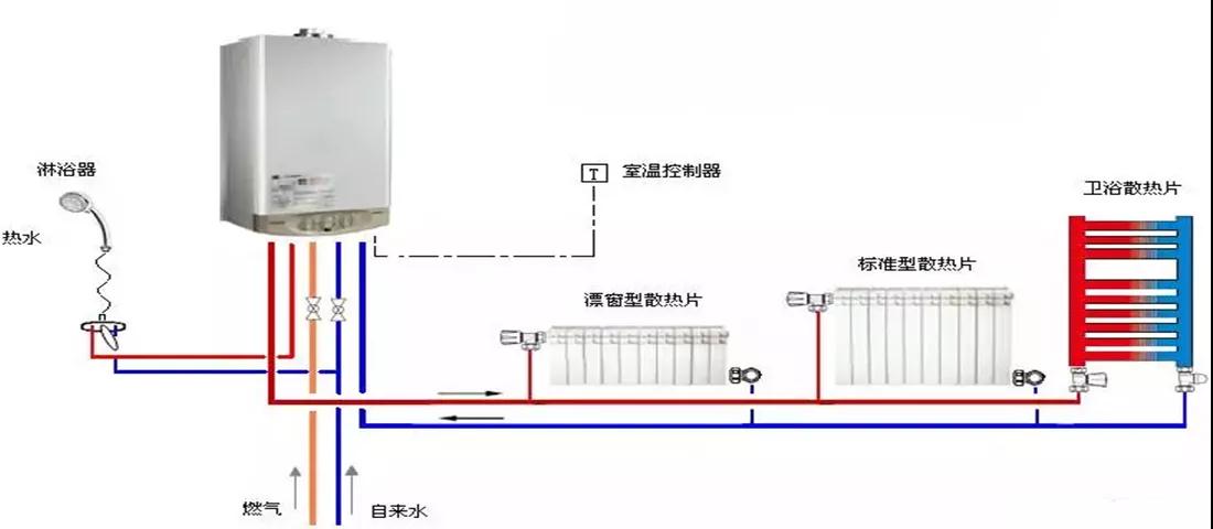 因?yàn)榕瘹馄膳昧藷峥諝庠恚ㄟ^(guò)暖氣片不斷披發(fā)的熱量,將室內(nèi)空氣加熱,達(dá)到制熱的目的。明裝的安裝方式讓暖氣片和管道直接暴露在外面,讓熱量披發(fā)暢通無(wú)阻,采暖效果更佳。